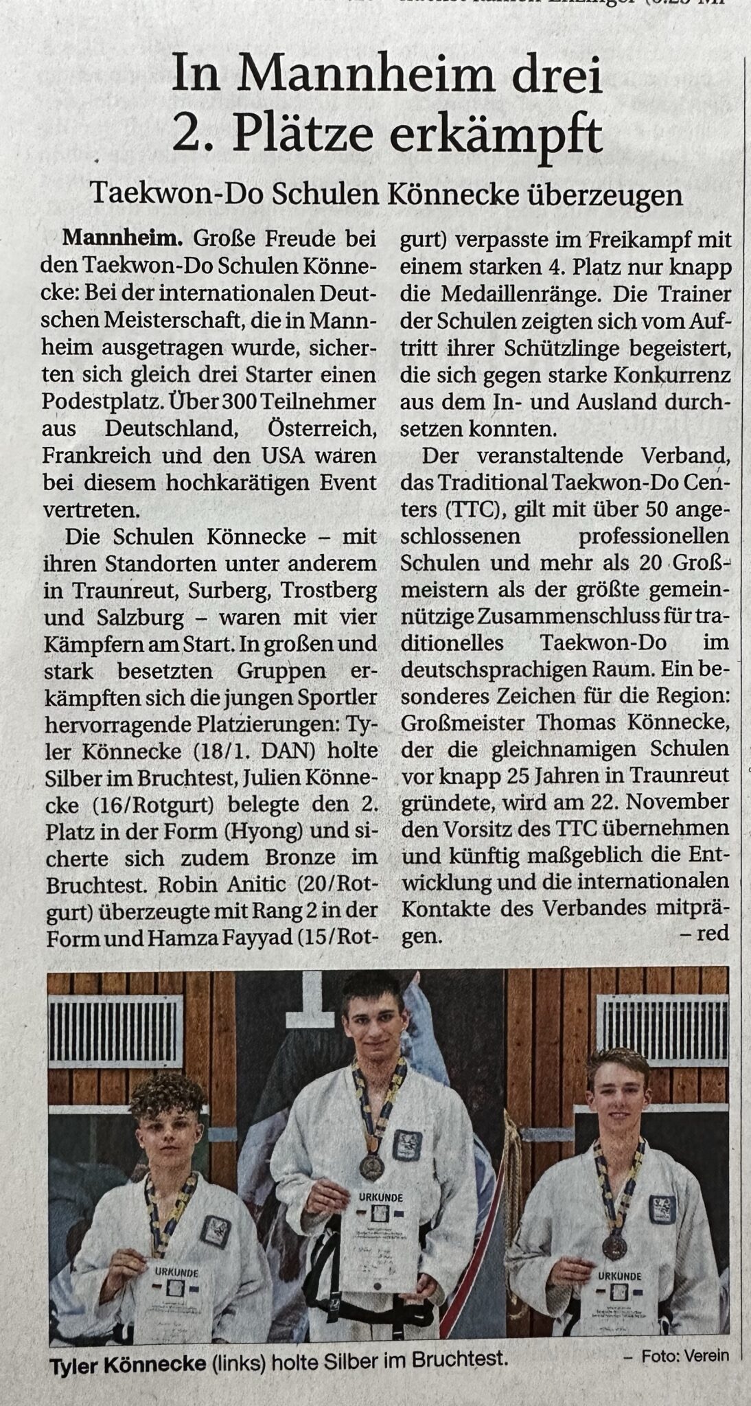 Mannheim / Chiemgau. Bei der diesjährigen Internationalen Deutschen Meisterschaft des Traditional Taekwon-Do Centers (TTC) haben die Taekwon-Do Schulen Könnecke eindrucksvoll bewiesen, wie viel Herz, Disziplin und Können in ihrem Nachwuchs steckt.